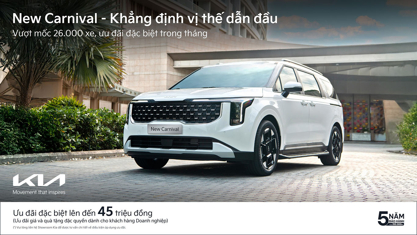 Vượt mốc 26.000 xe, Kia New Carnival khẳng định sức hút và sự tin chọn của khách hàng Việt với nhiều điểm vượt trội như thiết kế sang trọng, không gian rộng rãi, tiện nghi hàng đầu và an toàn cao cấp. Mẫu xe không chỉ là phương tiện di chuyển, mà còn là biểu tượng cho sự thành đạt và đẳng cấp của khách hàng.
